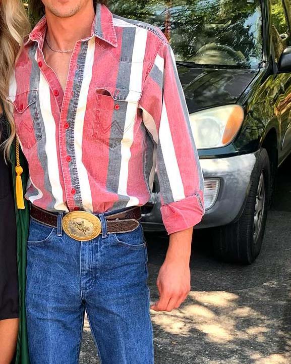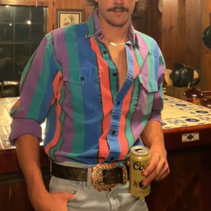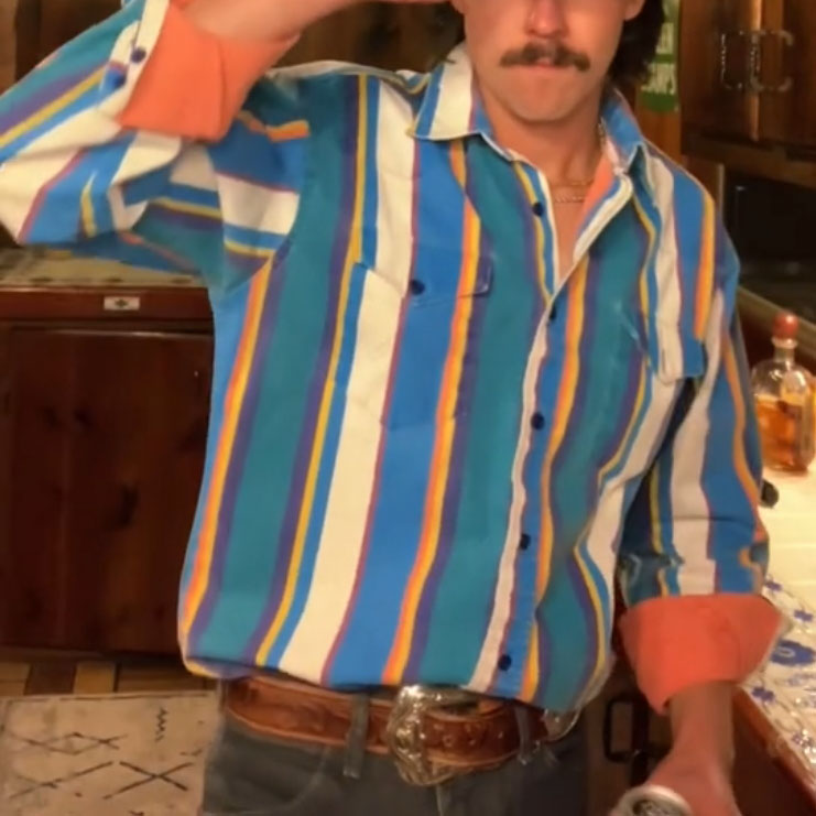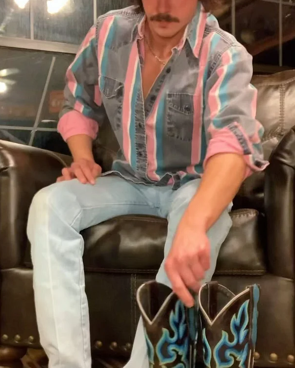 Men's Fashionable Casual Western Blue White Striped Shirt