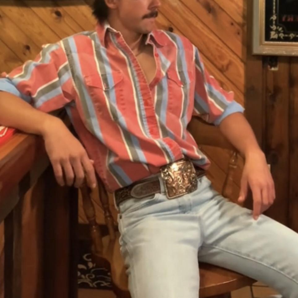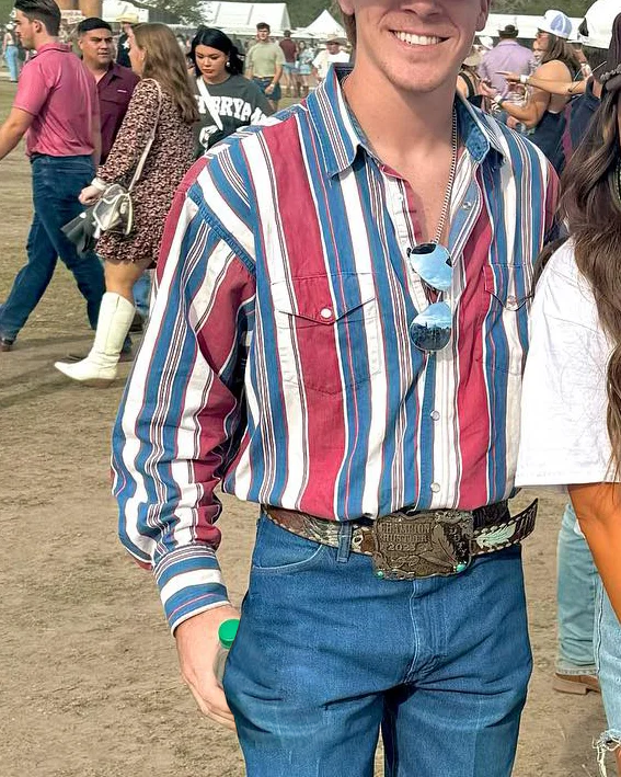 Men's Casual Western Blue and White Striped Long Sleeve Shirt