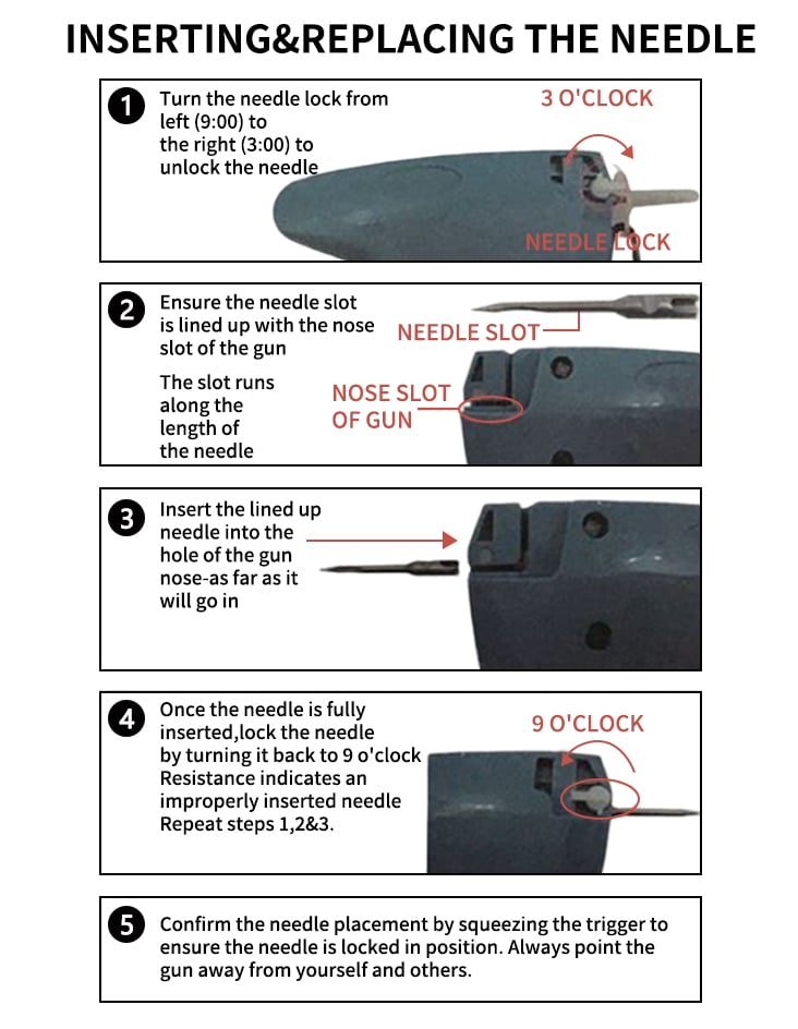 QUICK & EASY OPERATION – insert the fasteners, push the needle through the fabric, and press the trigger, a quick fix is finished!