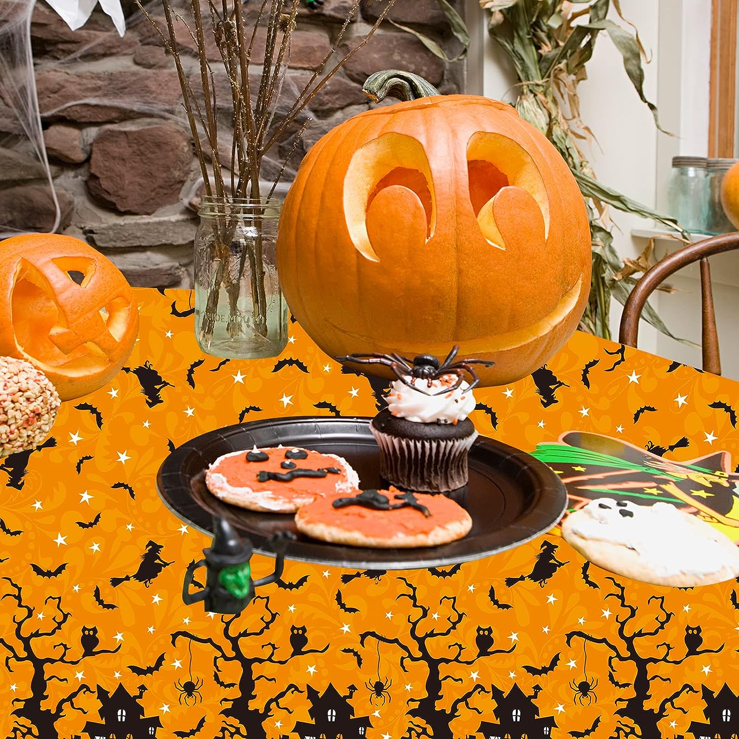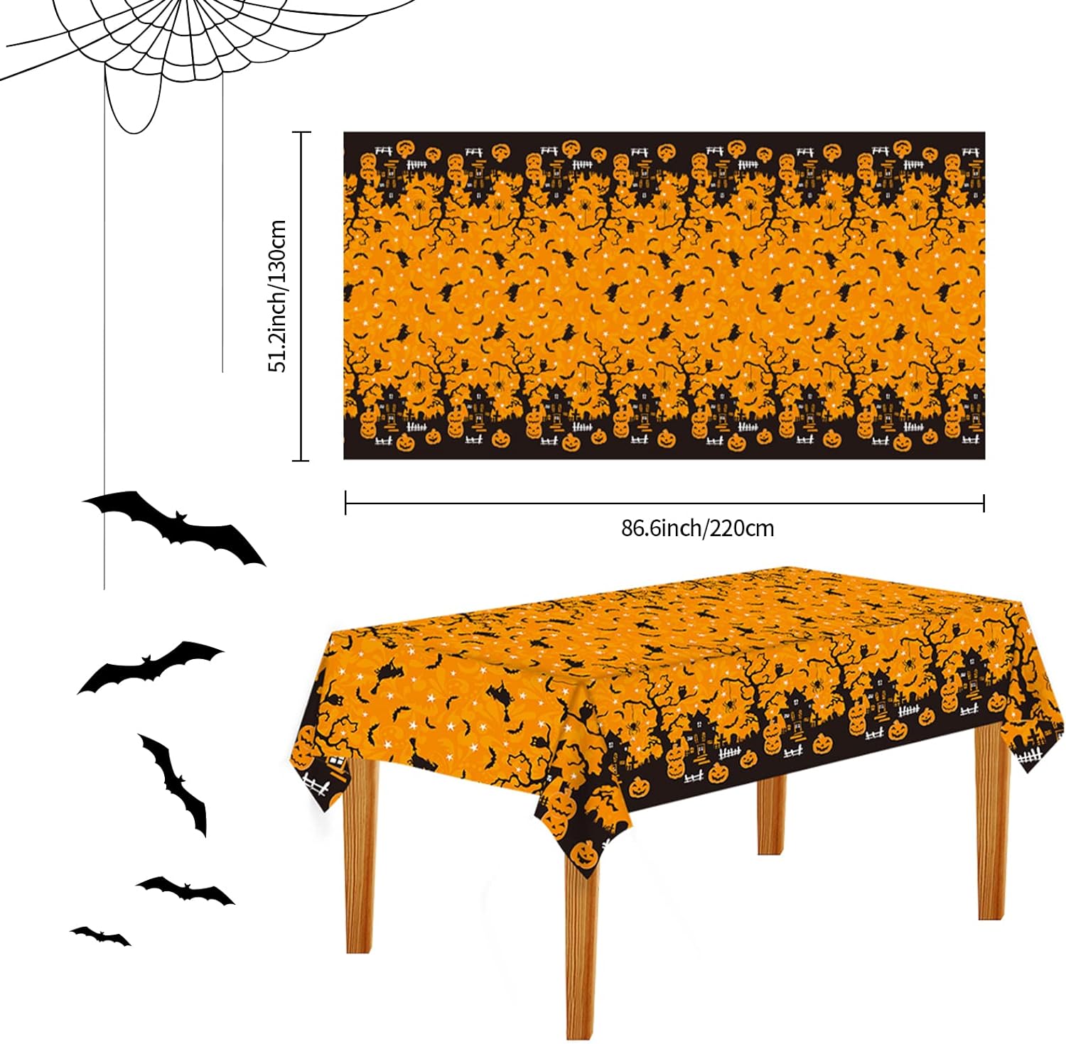 Halloween decoration tablecloth: tablecloth with pumpkin, haunted house, tree, witch, bat and spider motifs.