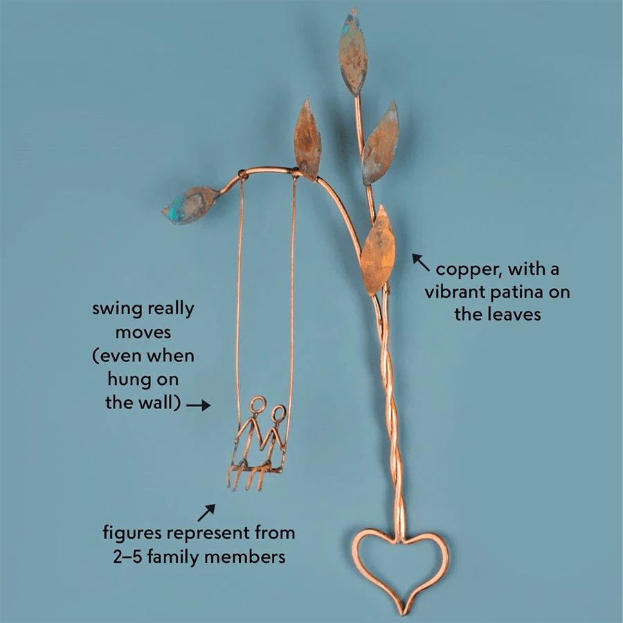 Our Rooted in Love Swing Sculpture is not mass-produced. Each piece is carefully handcrafted with love and attention to detail. This ensures that you receive a unique and special artwork that carries a personal touch, making it even more meaningful to gift or display in your own space.