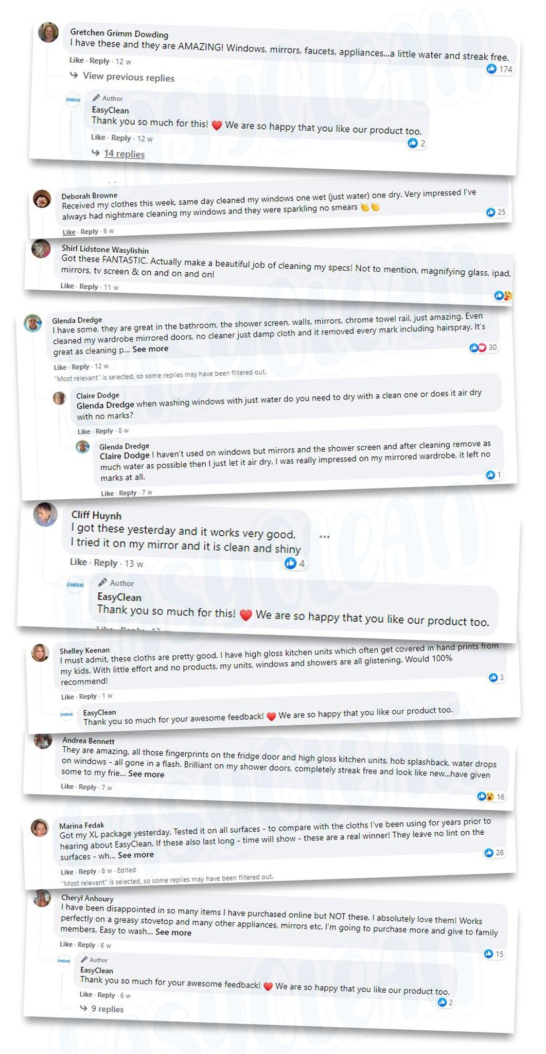 "If you are looking for a cloth that works great on any surface then you need to try these. I was skeptical at first about buying online but I am so glad I took the chance! 10/10 this type of cloth is highly recommended, have already told my friends and family about them."